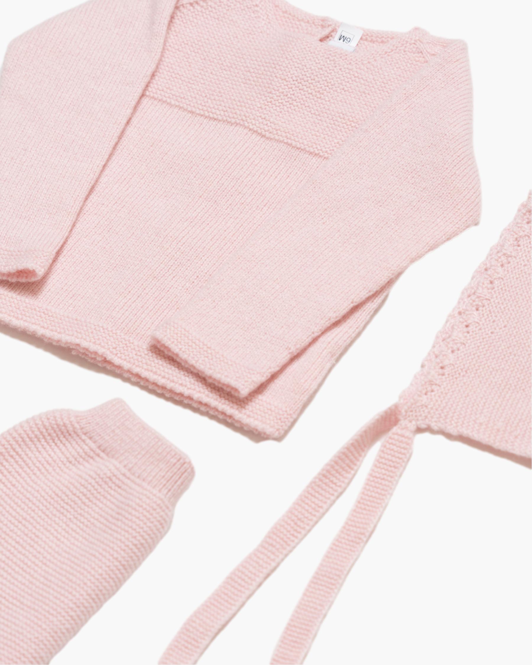 If you’re looking for a special gift for a Newborn, this beautiful Pink set is a gorgeous choice. Softly knitted from the softest fabric with a touch of cashmere and wool. A lovely addition to the Newborn's wardrobe, available with or without the bonnet. Exclusive giftbox wrap is available. Made in Spain.