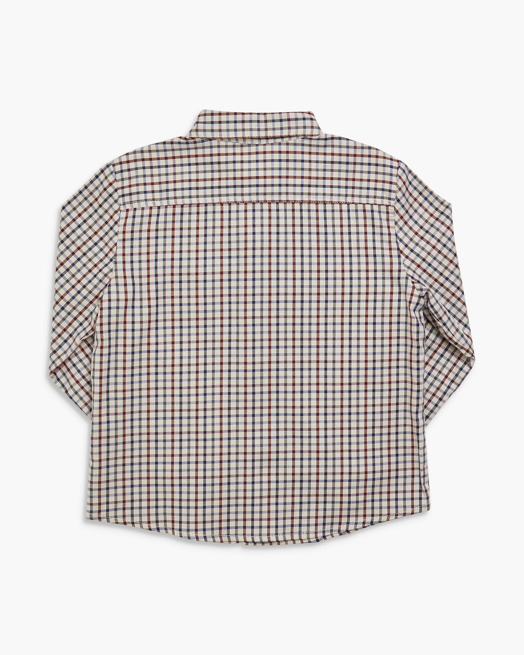 Elevate your son's closet with our Ralph Shirt, a refined long-sleeved piece made from luxurious multico check cotton. With its classic collar and mother-of-pearl button-down placket, this shirt exudes sophistication and timeless charm. Complete the look with our classic Theodore trousers for an effortlessly chic ensemble, that embodies the perfect balance of comfort and elegance.