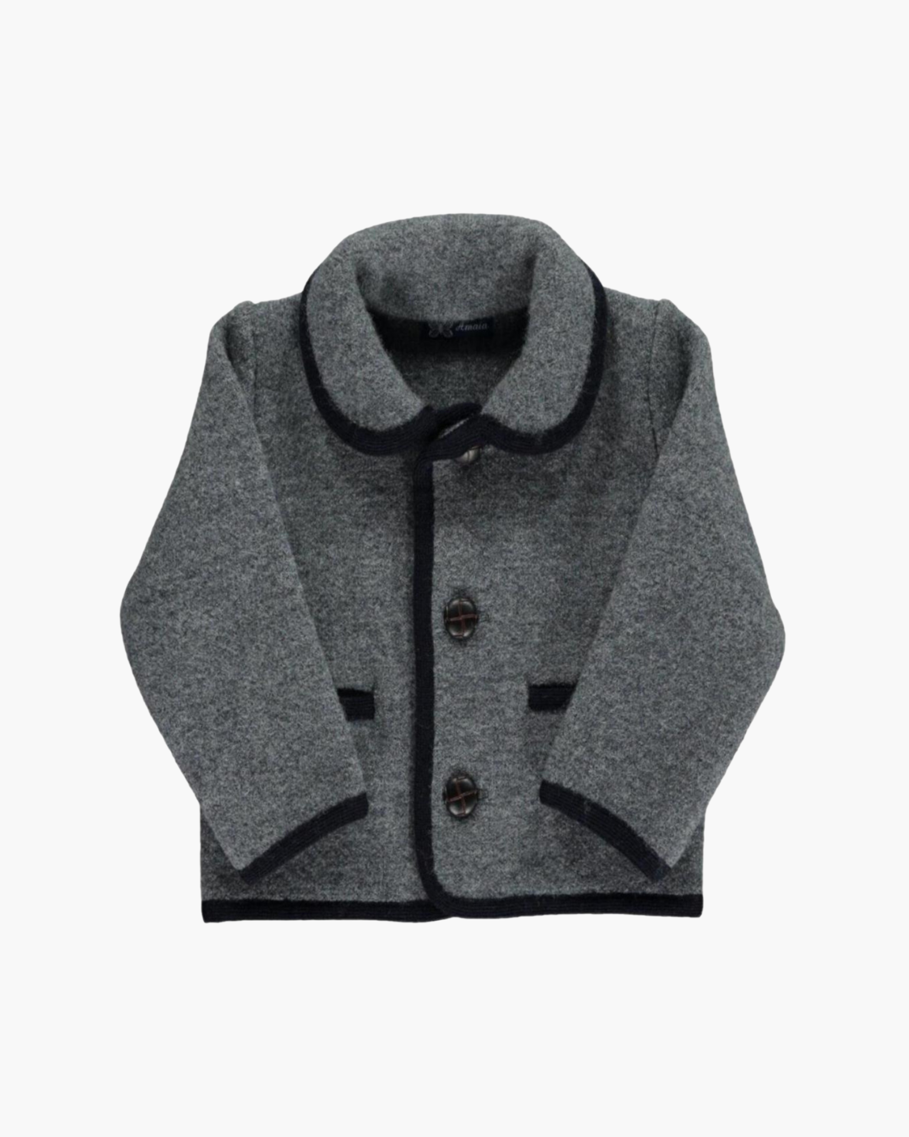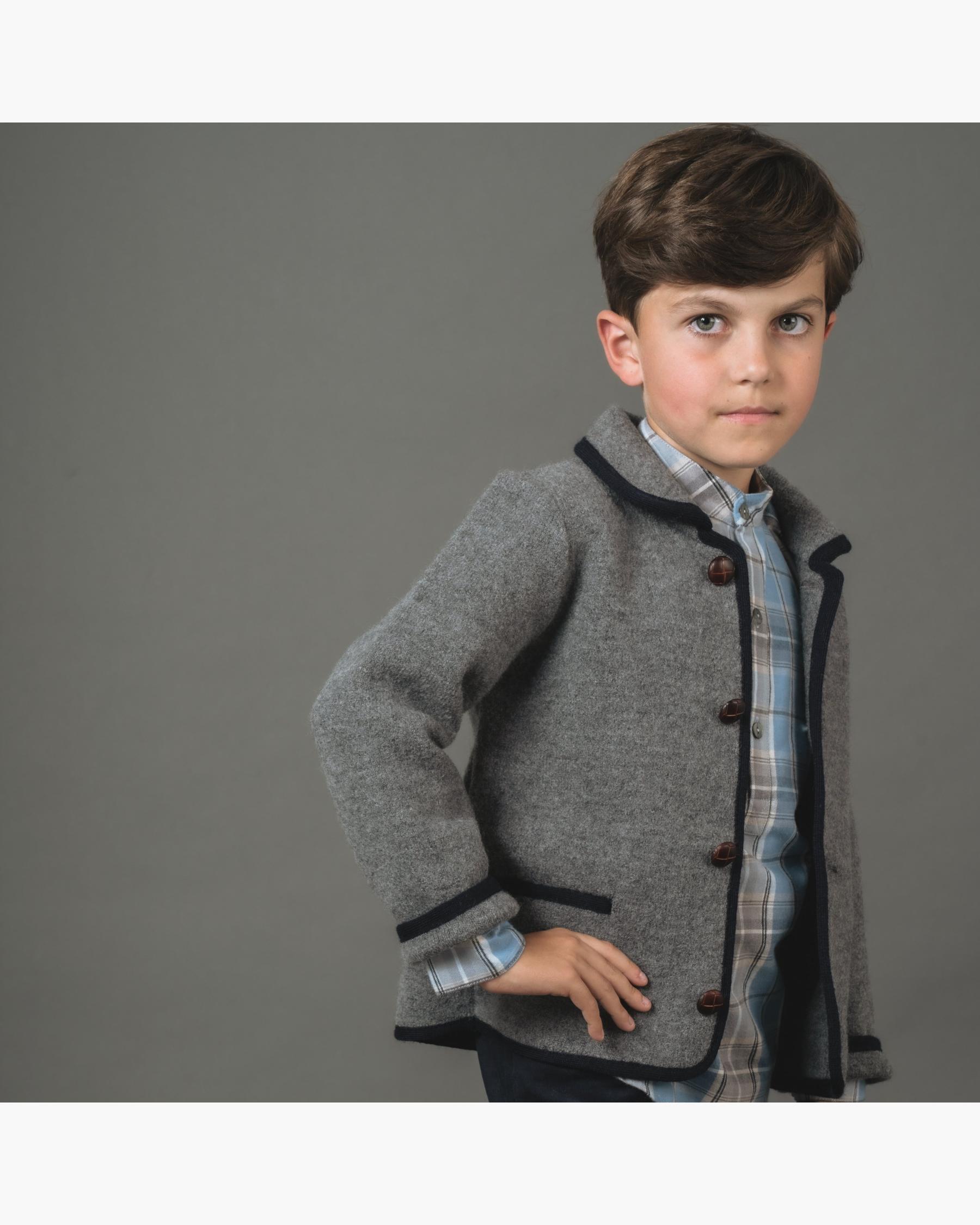 Capture the timeless elegance of classic design with the Austrian Jacket, made from 100% Merino wool. Crafted from strong, crisp boiled wool, this grey jacket features a notched collar, sophisticated horn-effect buttons, and small front pockets. This exclusive jacket as worn by Prince George promises to keep your little one cosy and warm, making it a true luxury piece.